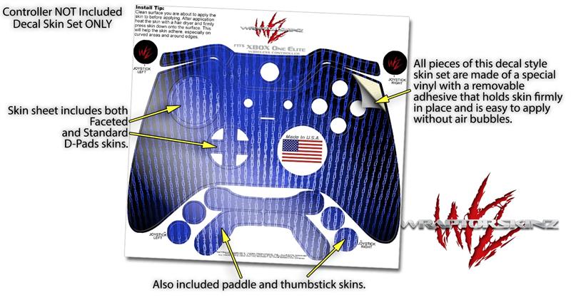 Binary Rain Blue - Decal Style Skin fits Microsoft XBOX One ELITE Wireless Controller