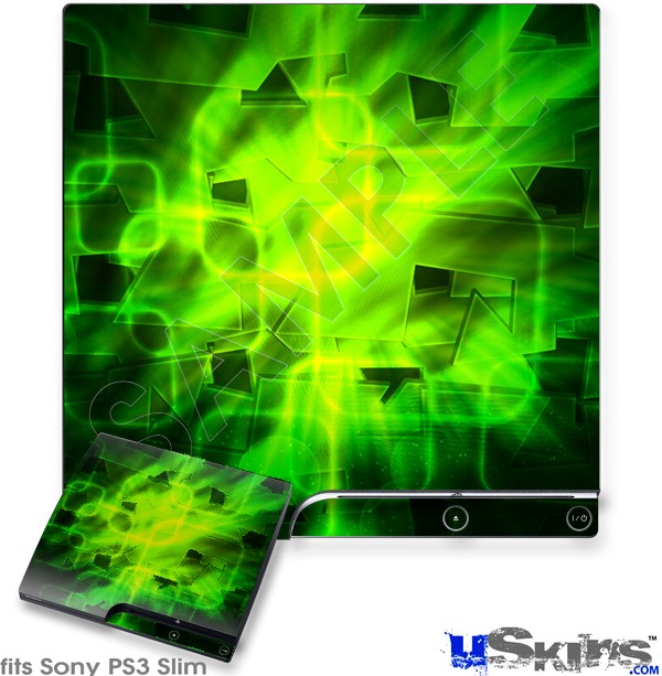 Decal Skin compatible with Sony PS3 Slim Cubic Shards Green