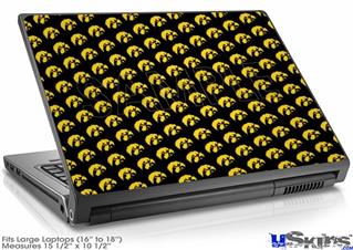 Laptop Skin (Large) - Iowa Hawkeyes Tigerhawk Tiled 06 Gold on Black
