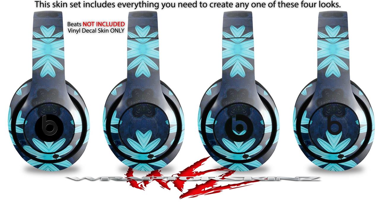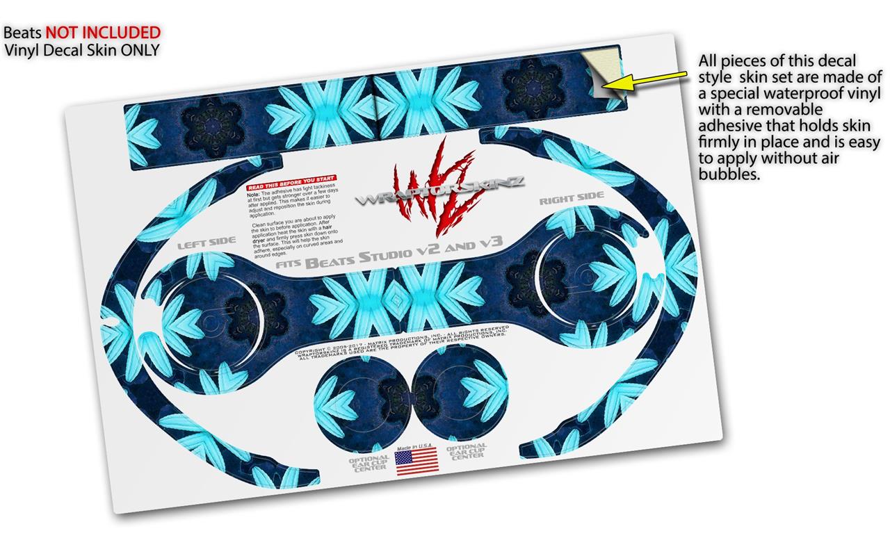 WraptorSkinz Skin Decal Wrap compatible with Beats Studio 2 and 3 Wired and Wireless Headphones Abstract Floral Blue Skin Only (HEADPHONES NOT INCLUDED)