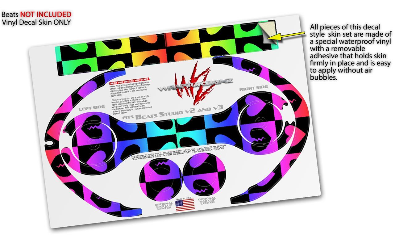 WraptorSkinz Skin Decal Wrap compatible with Beats Studio 2 and 3 Wired and Wireless Headphones Love Heart Checkers Rainbow Skin Only (HEADPHONES NOT INCLUDED)