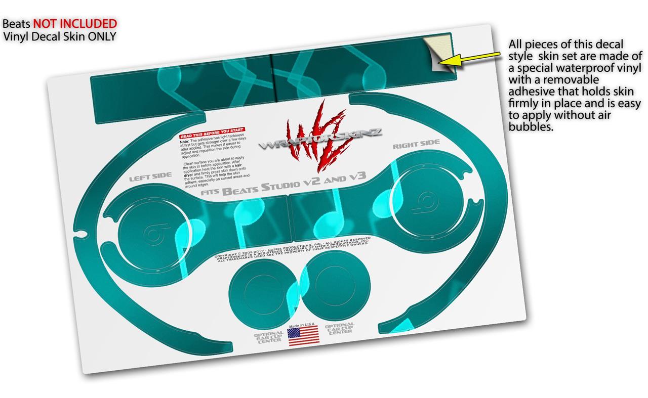 WraptorSkinz Skin Decal Wrap compatible with Beats Studio 2 and 3 Wired and Wireless Headphones Bokeh Music Neon Teal Skin Only (HEADPHONES NOT INCLUDED)