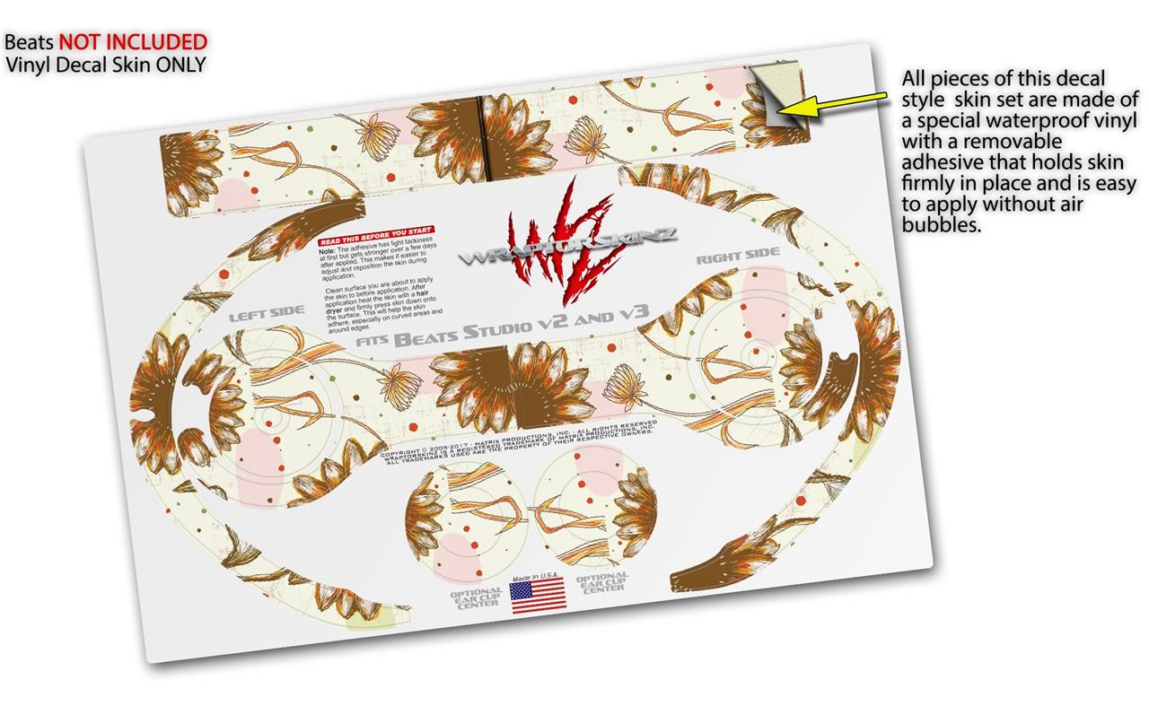 WraptorSkinz Skin Decal Wrap compatible with Beats Studio 2 and 3 Wired and Wireless Headphones Flowers Pattern 19 Skin Only (HEADPHONES NOT INCLUDED)