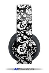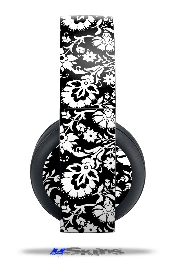 Vinyl Decal Skin Wrap compatible with Original Sony PlayStation 4 Gold Wireless Headphones Black and White Flower (PS4 HEADPHONES NOT INCLUDED)