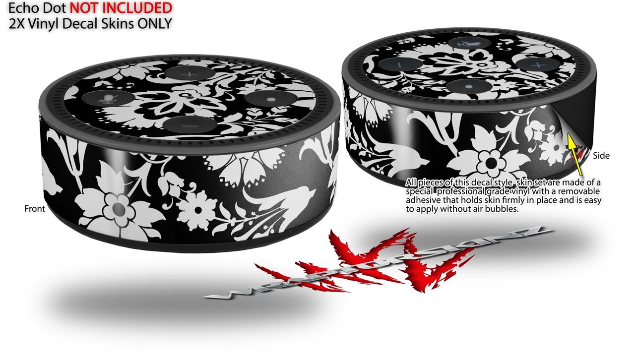 Skin Wrap Decal Set 2 Pack for Amazon Echo Dot 2 - Black and White Flower (2nd Generation ONLY - Echo NOT INCLUDED)