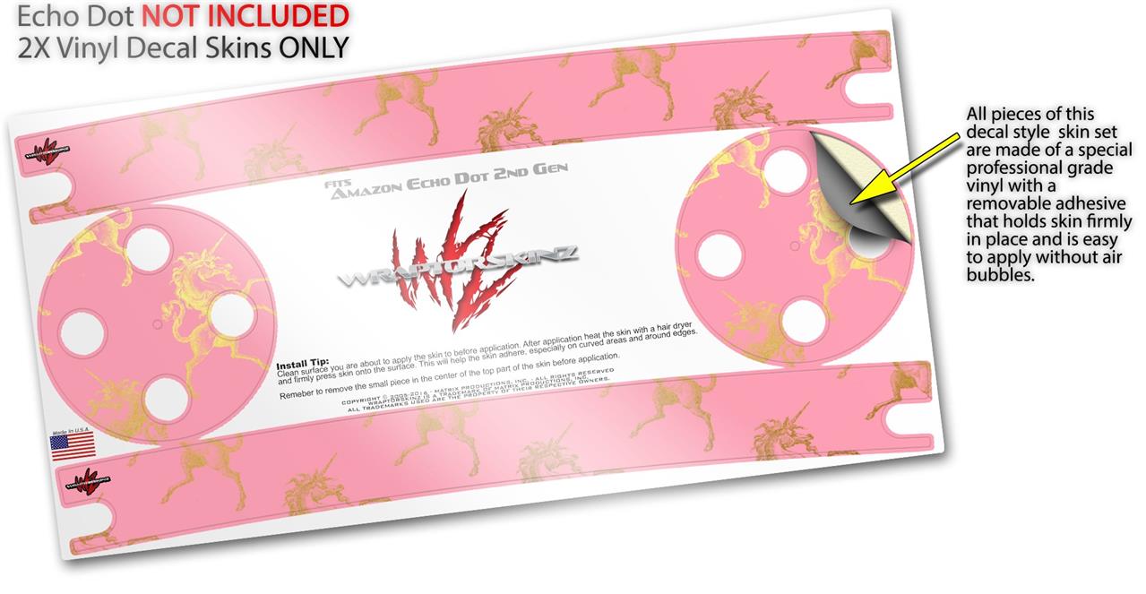 Skin Wrap Decal Set 2 Pack for Amazon Echo Dot 2 - Golden Unicorn (2nd Generation ONLY - Echo NOT INCLUDED)