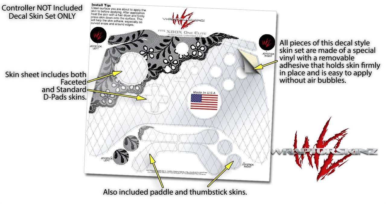 Black and White Lace - Decal Style Skin fits Microsoft XBOX One ELITE Wireless Controller