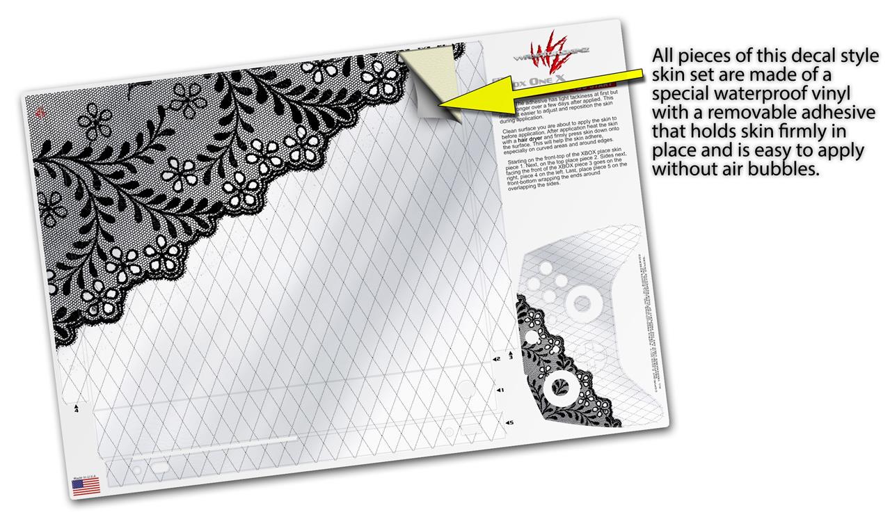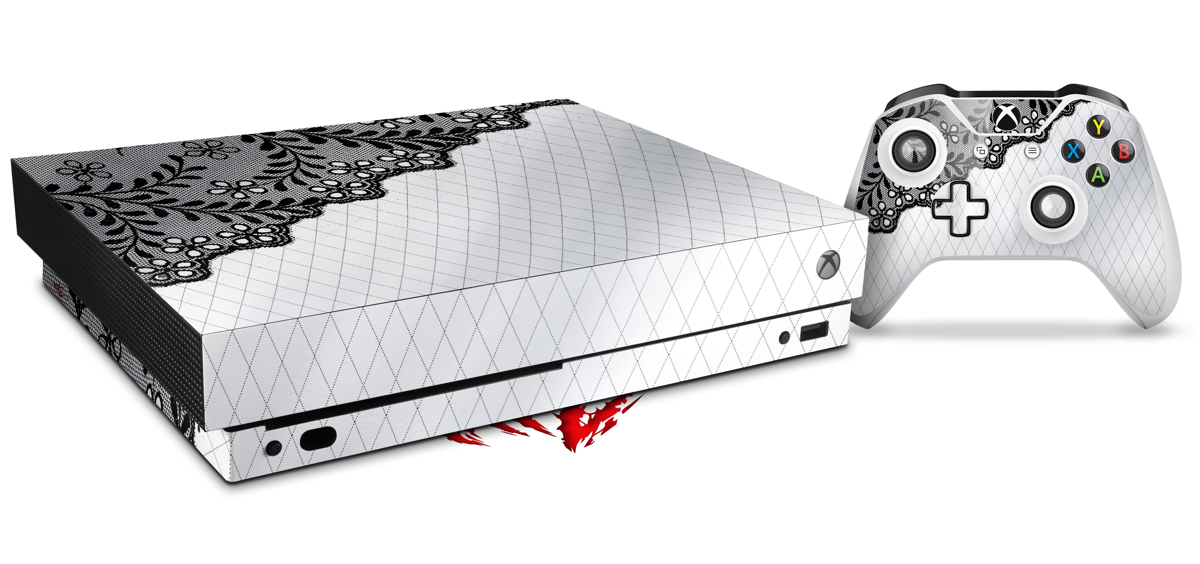 Skin Wrap for XBOX One X Console and Controller Black and White Lace