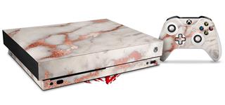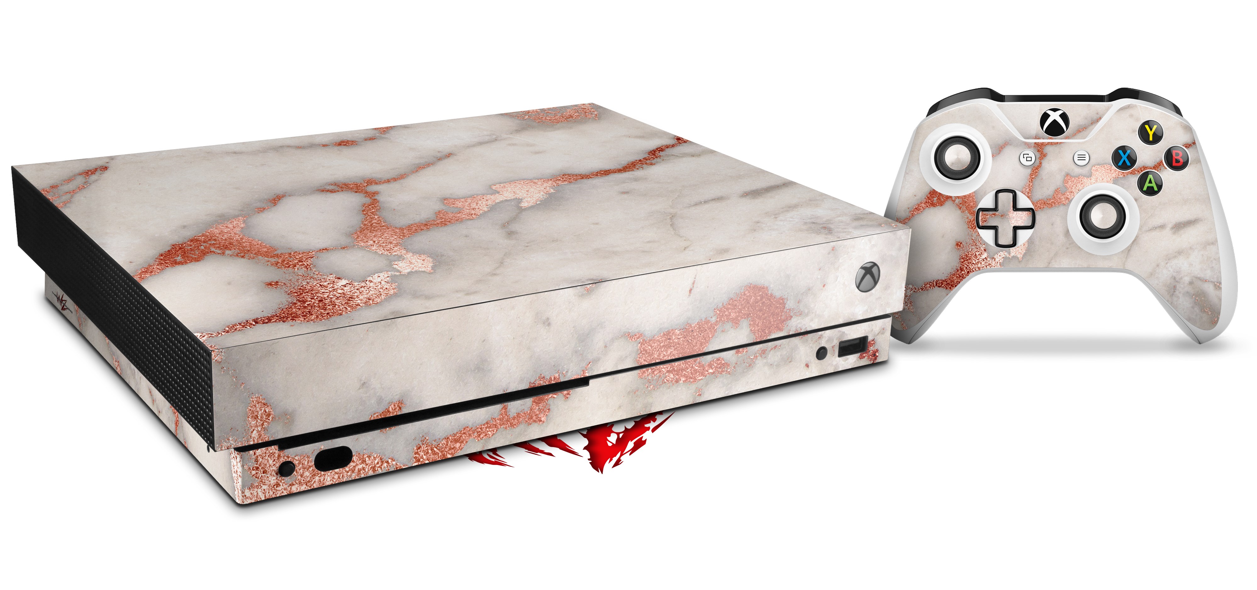 Skin Wrap for XBOX One X Console and Controller Rose Gold Gilded Marble