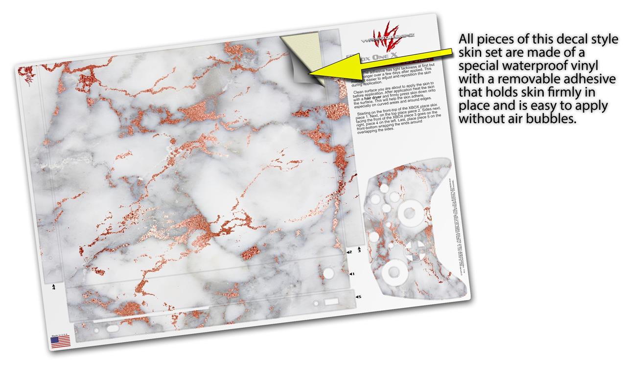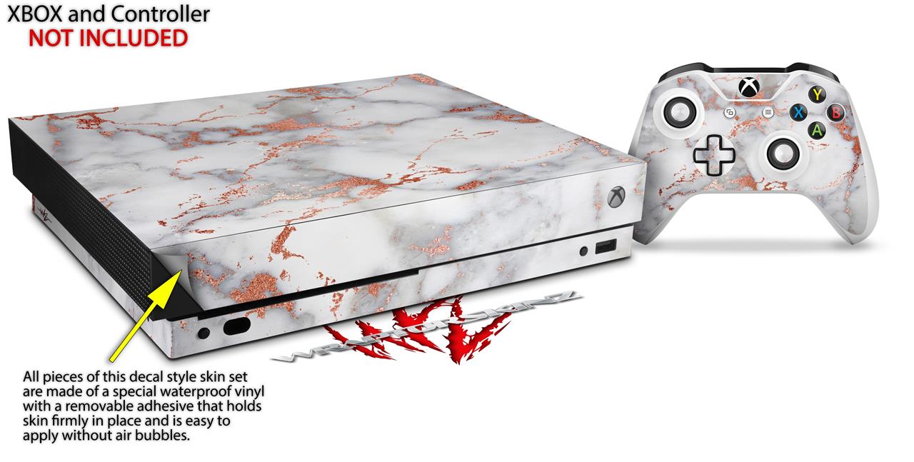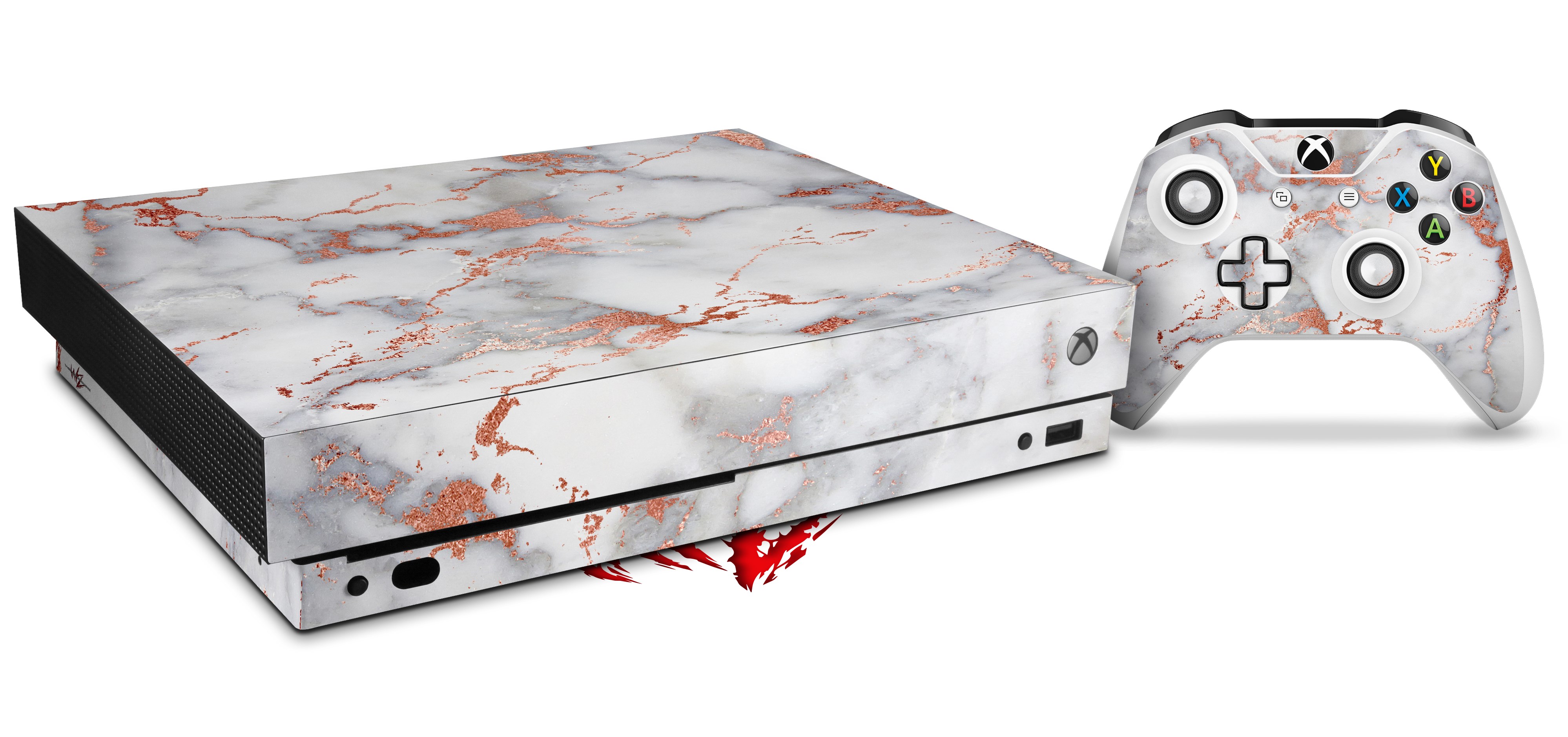 Skin Wrap for XBOX One X Console and Controller Rose Gold Gilded Grey Marble