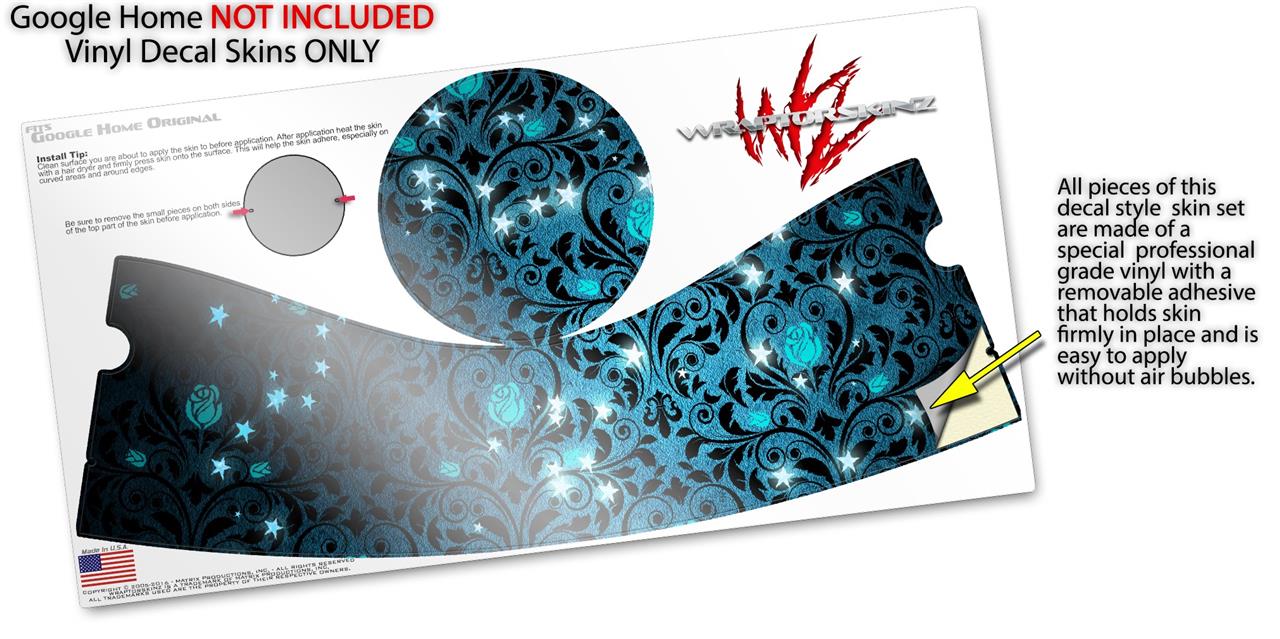 Decal Style Skin Wrap for Google Home Original - Blue Flower Bomb Starry Night (GOOGLE HOME NOT INCLUDED)