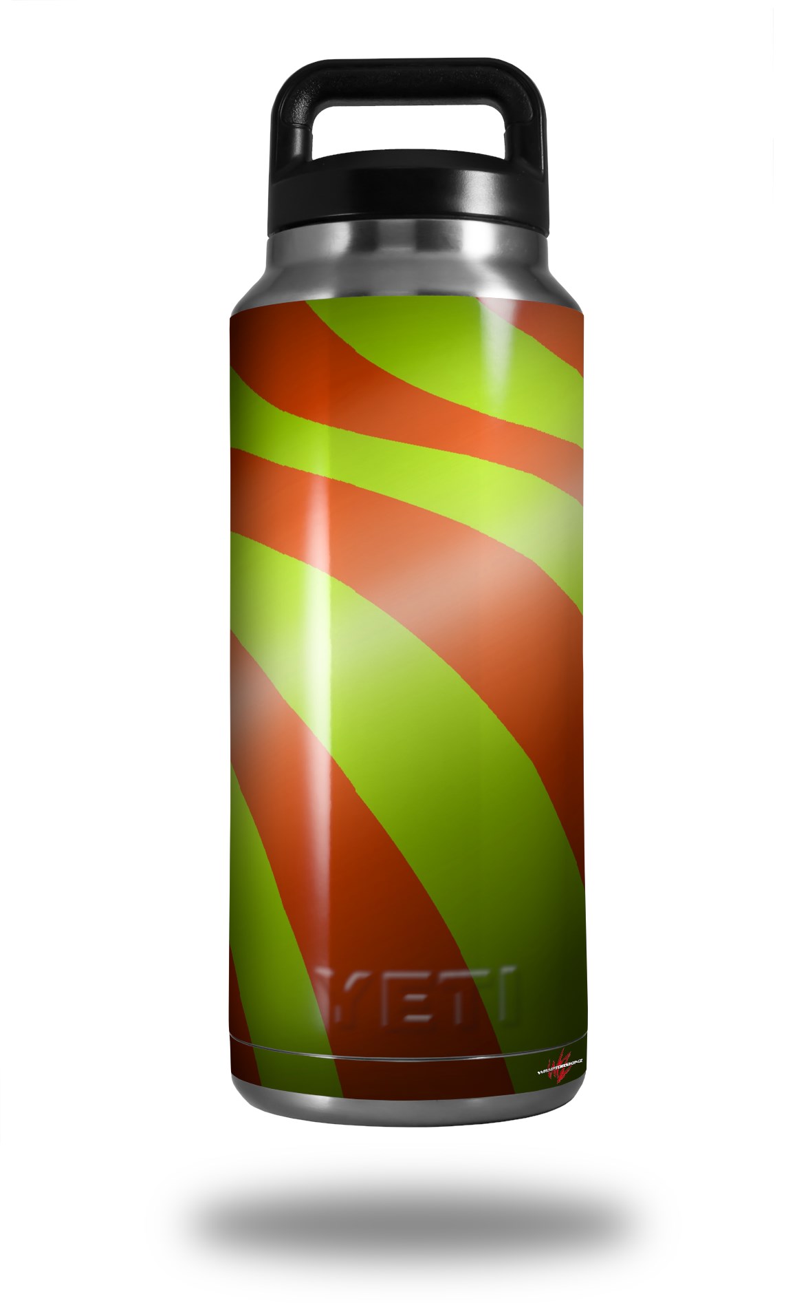 Skin Decal Wrap for Yeti Rambler Bottle 36oz Two Tone Waves Neon Green Orange (YETI NOT INCLUDED)