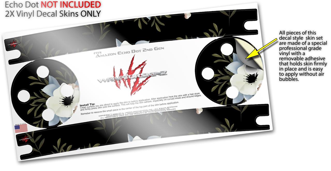 Skin Wrap Decal Set 2 Pack for Amazon Echo Dot 2 - Poppy Dark (2nd Generation ONLY - Echo NOT INCLUDED)