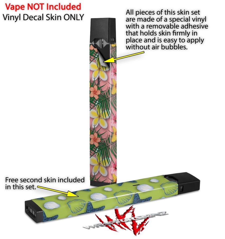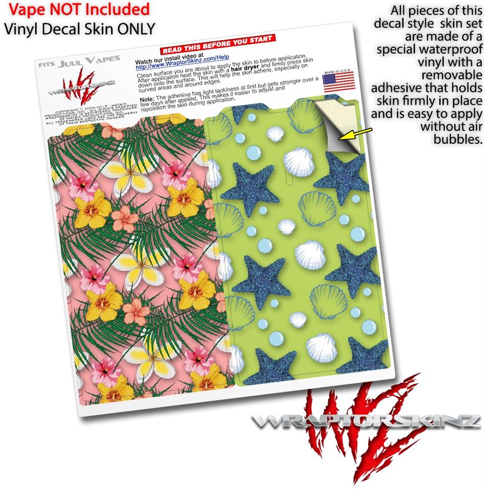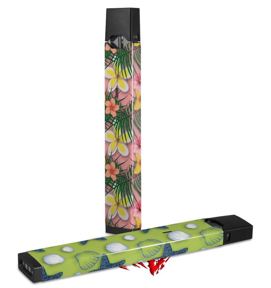 Skin Decal Wrap 2 Pack for Juul Vapes Beach Flowers 02 Pink JUUL NOT INCLUDED