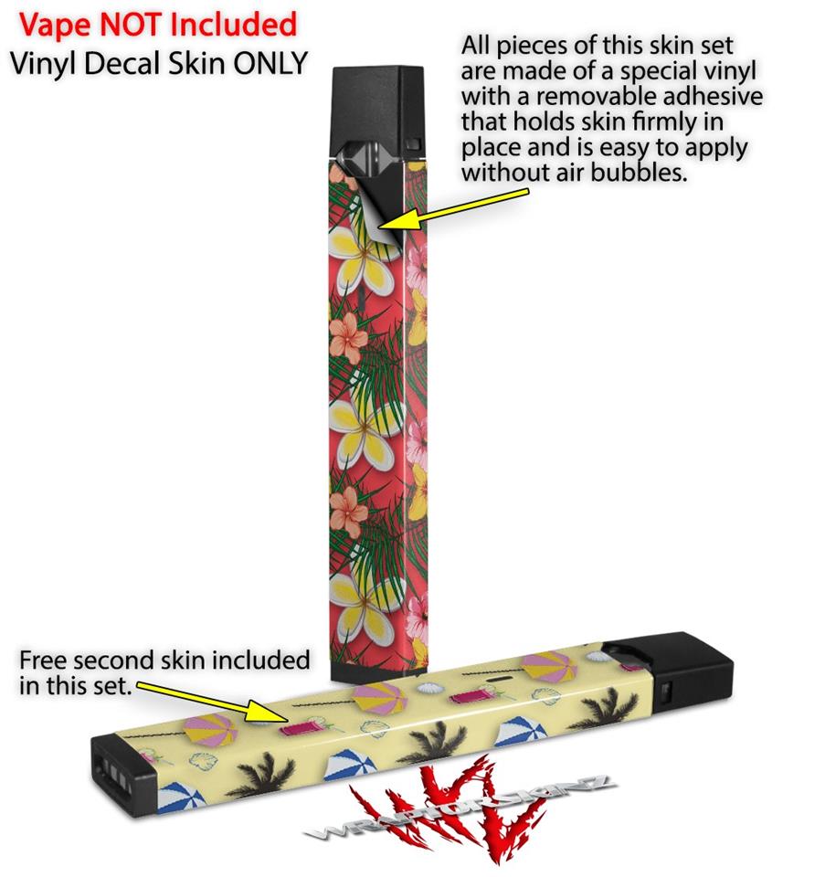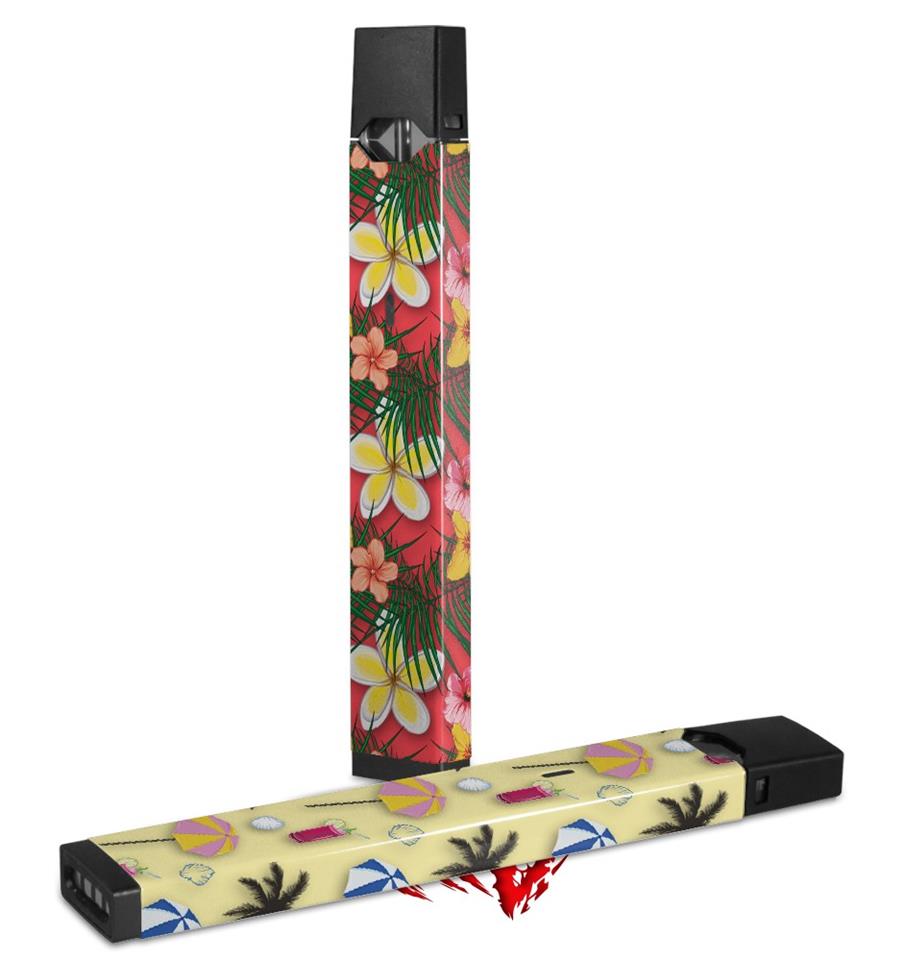 Skin Decal Wrap 2 Pack for Juul Vapes Beach Flowers 02 Coral JUUL NOT INCLUDED