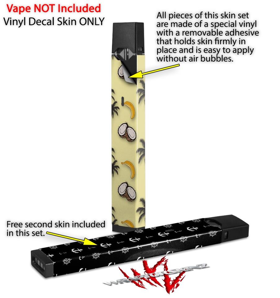 Skin Decal Wrap 2 Pack for Juul Vapes Coconuts Palm Trees and Bananas Yellow Sunshine JUUL NOT INCLUDED