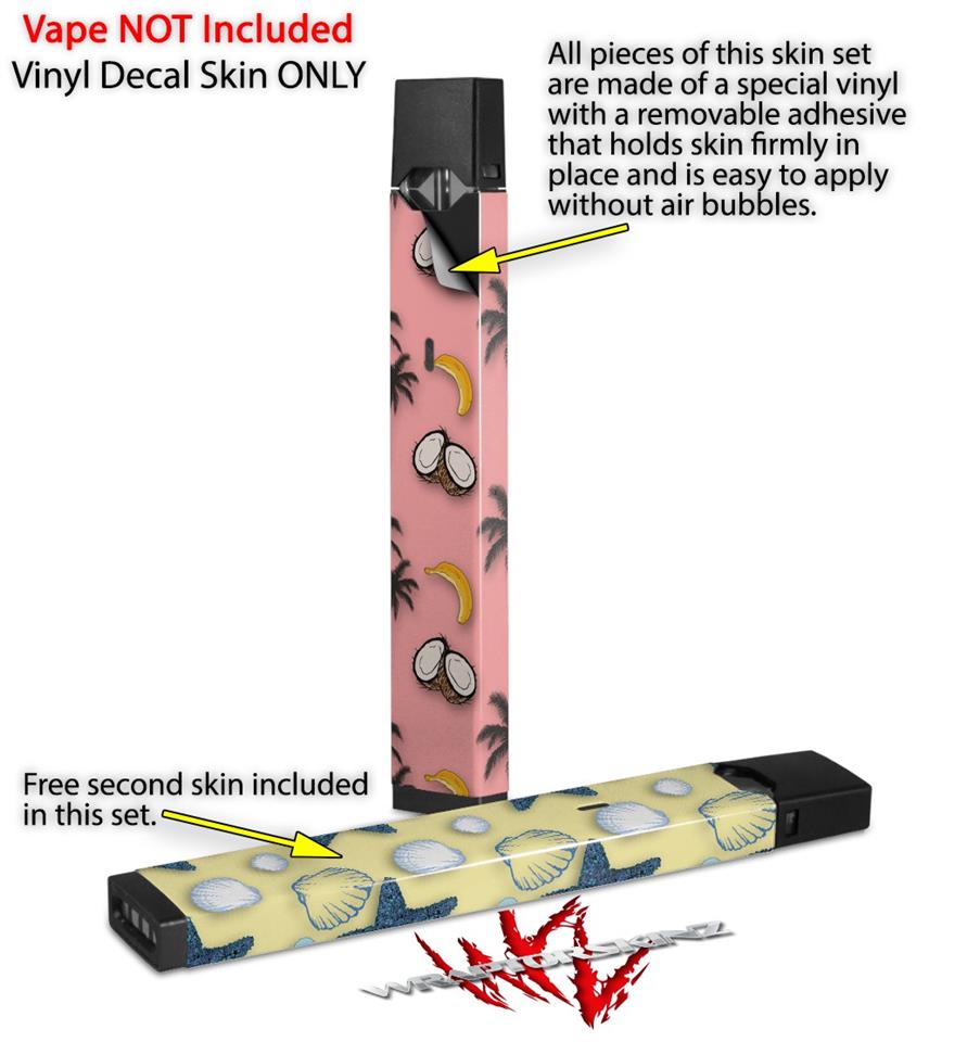 Skin Decal Wrap 2 Pack for Juul Vapes Coconuts Palm Trees and Bananas Pink JUUL NOT INCLUDED