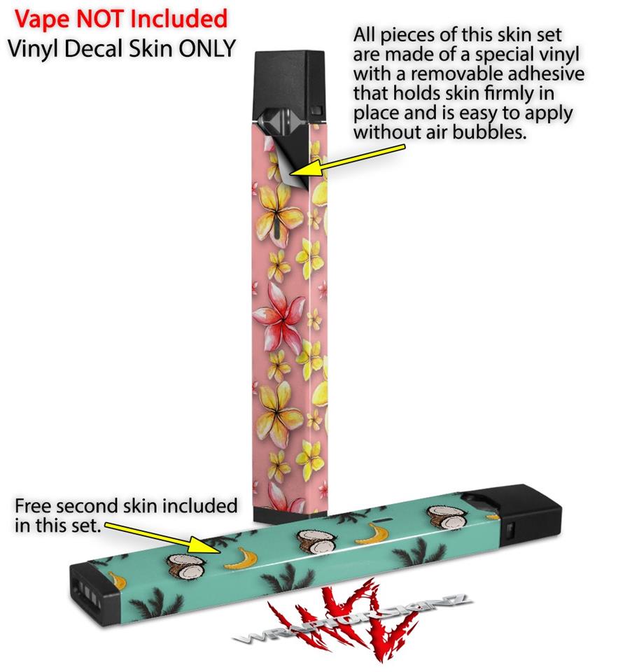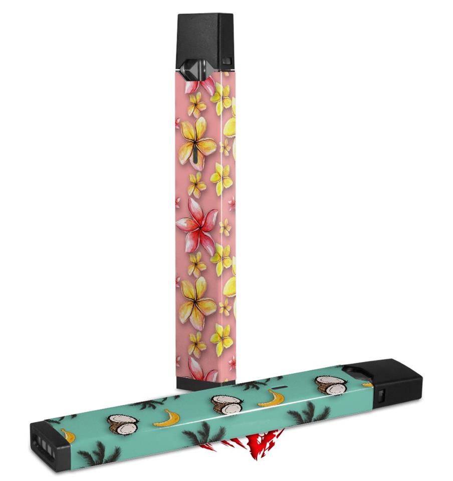 Skin Decal Wrap 2 Pack for Juul Vapes Beach Flowers Pink JUUL NOT INCLUDED