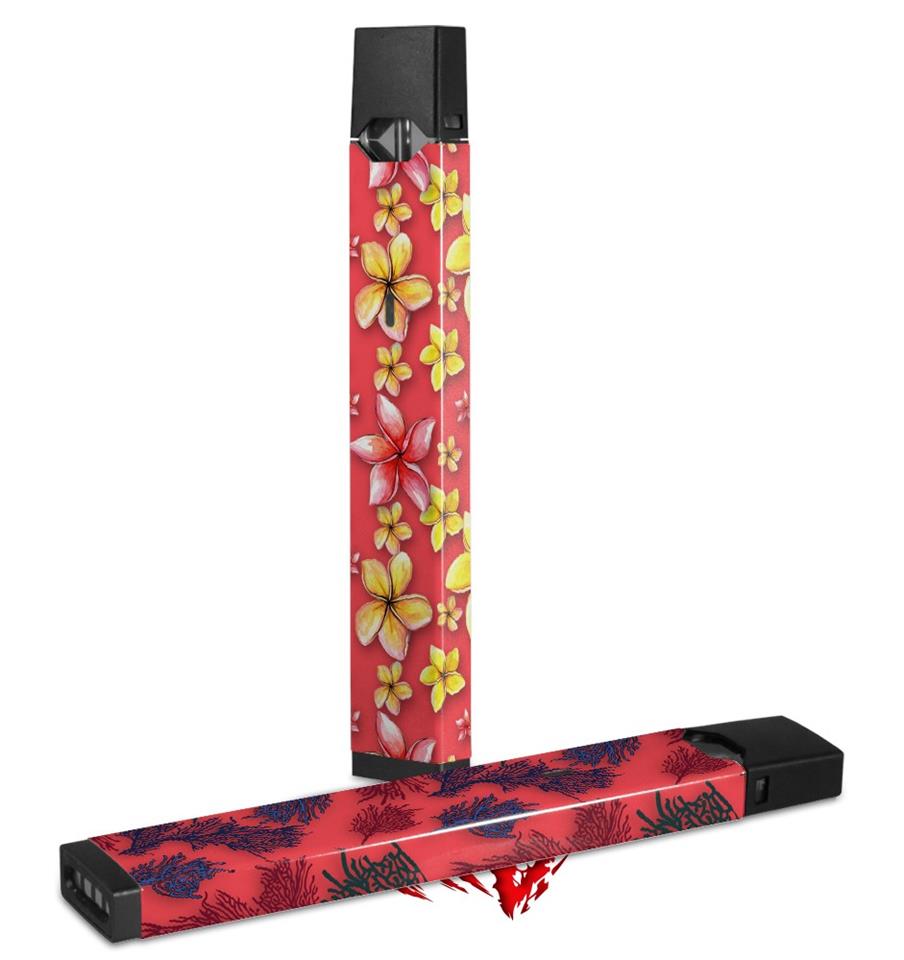 Skin Decal Wrap 2 Pack for Juul Vapes Beach Flowers Coral JUUL NOT INCLUDED