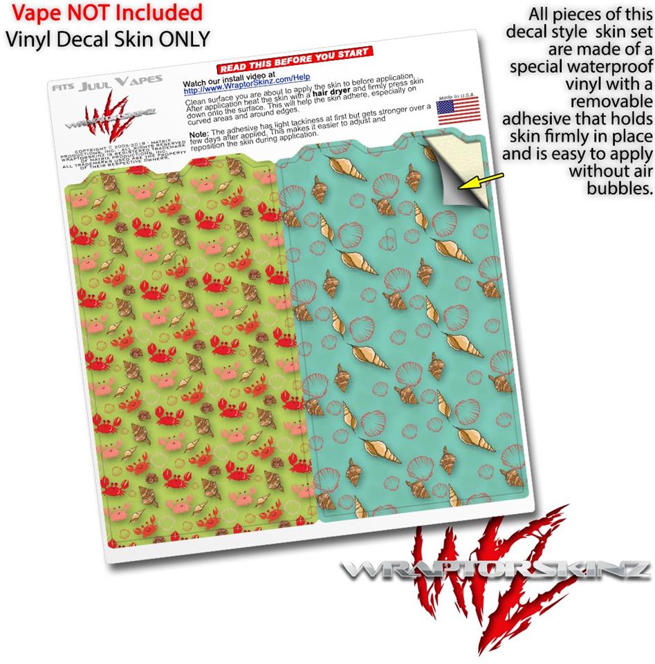 Skin Decal Wrap 2 Pack for Juul Vapes Crabs and Shells Sage Green JUUL NOT INCLUDED
