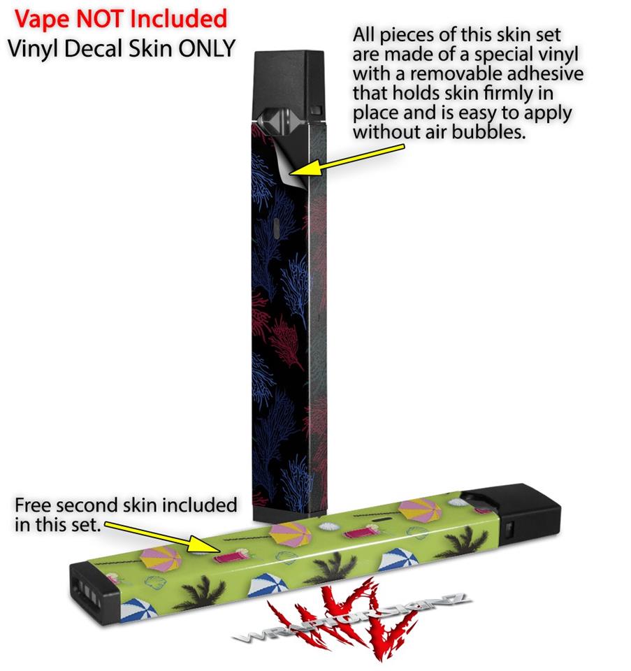 Skin Decal Wrap 2 Pack for Juul Vapes Floating Coral Black JUUL NOT INCLUDED
