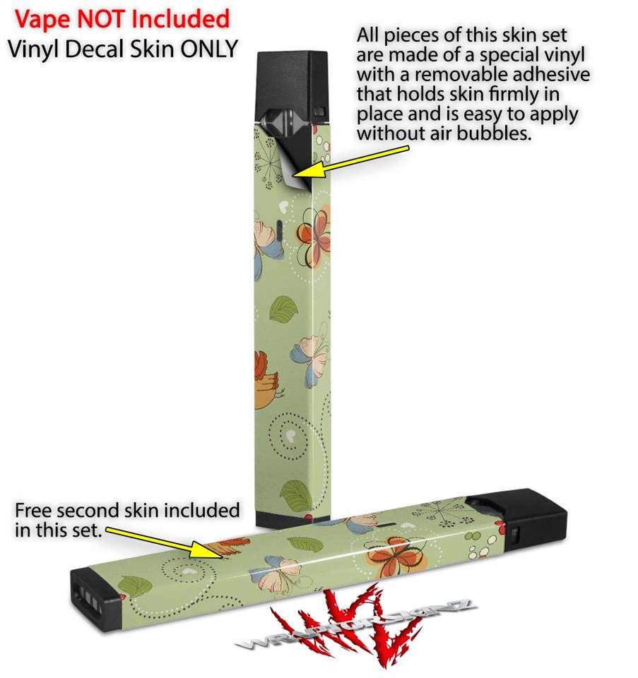 Skin Decal Wrap 2 Pack for Juul Vapes Birds Butterflies and Flowers JUUL NOT INCLUDED