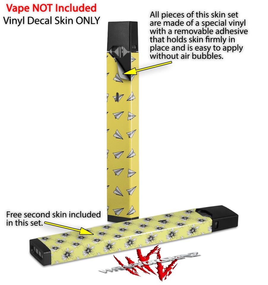 Skin Decal Wrap 2 Pack for Juul Vapes Paper Planes Yellow JUUL NOT INCLUDED