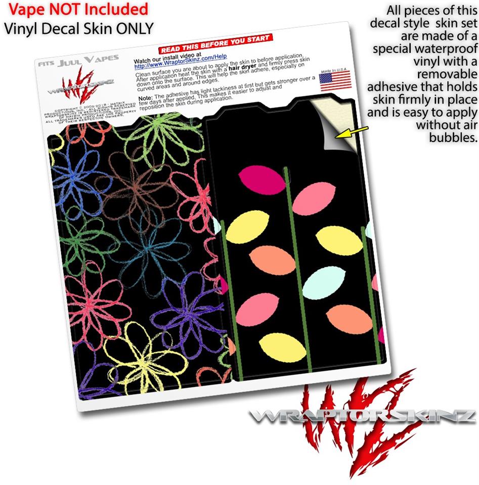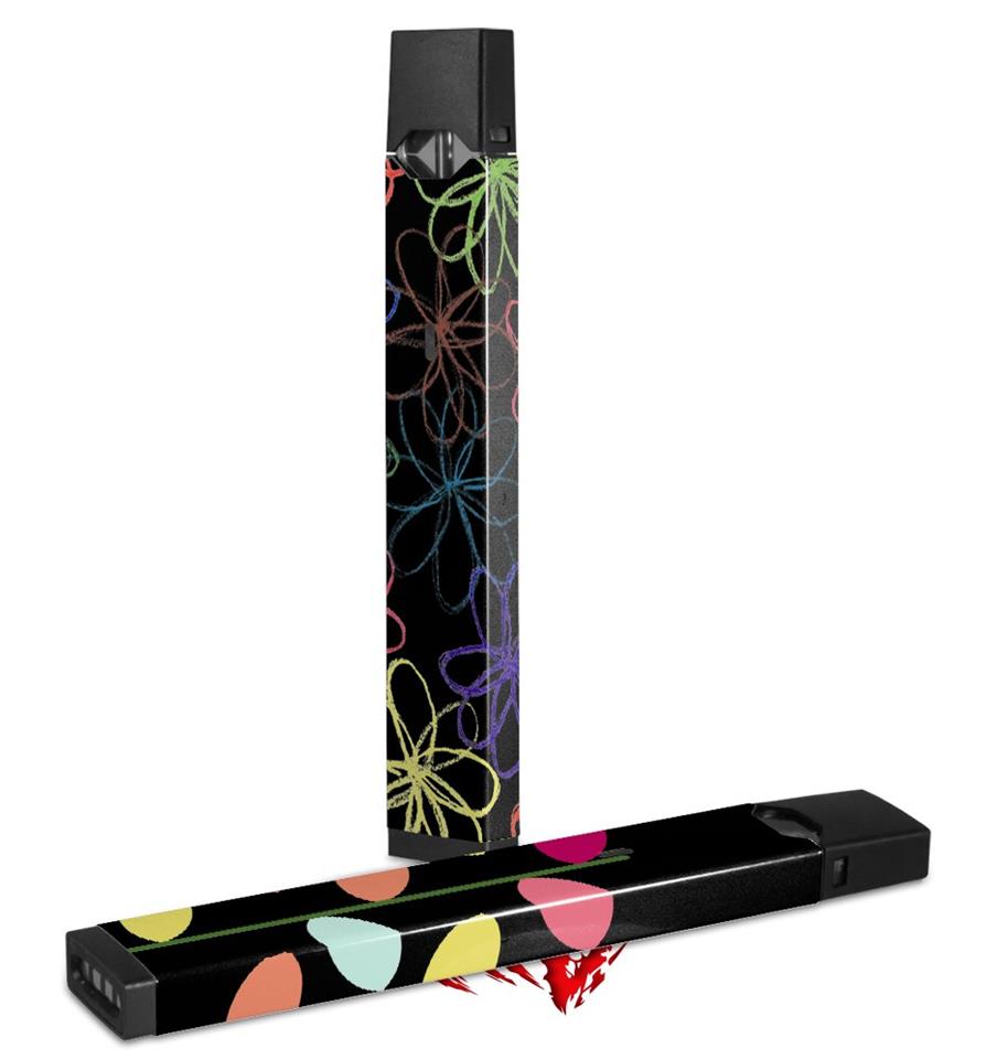 Skin Decal Wrap 2 Pack for Juul Vapes Kearas Flowers on Black JUUL NOT INCLUDED
