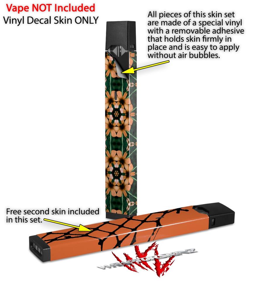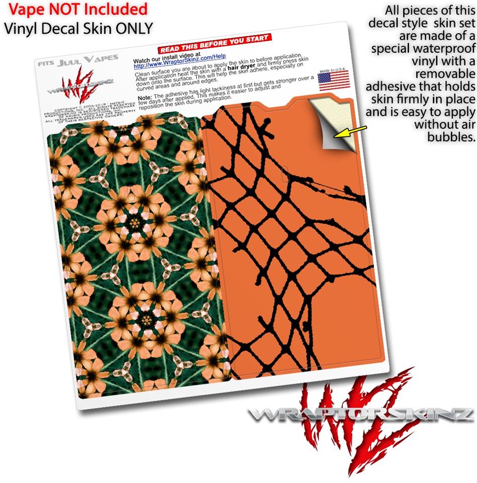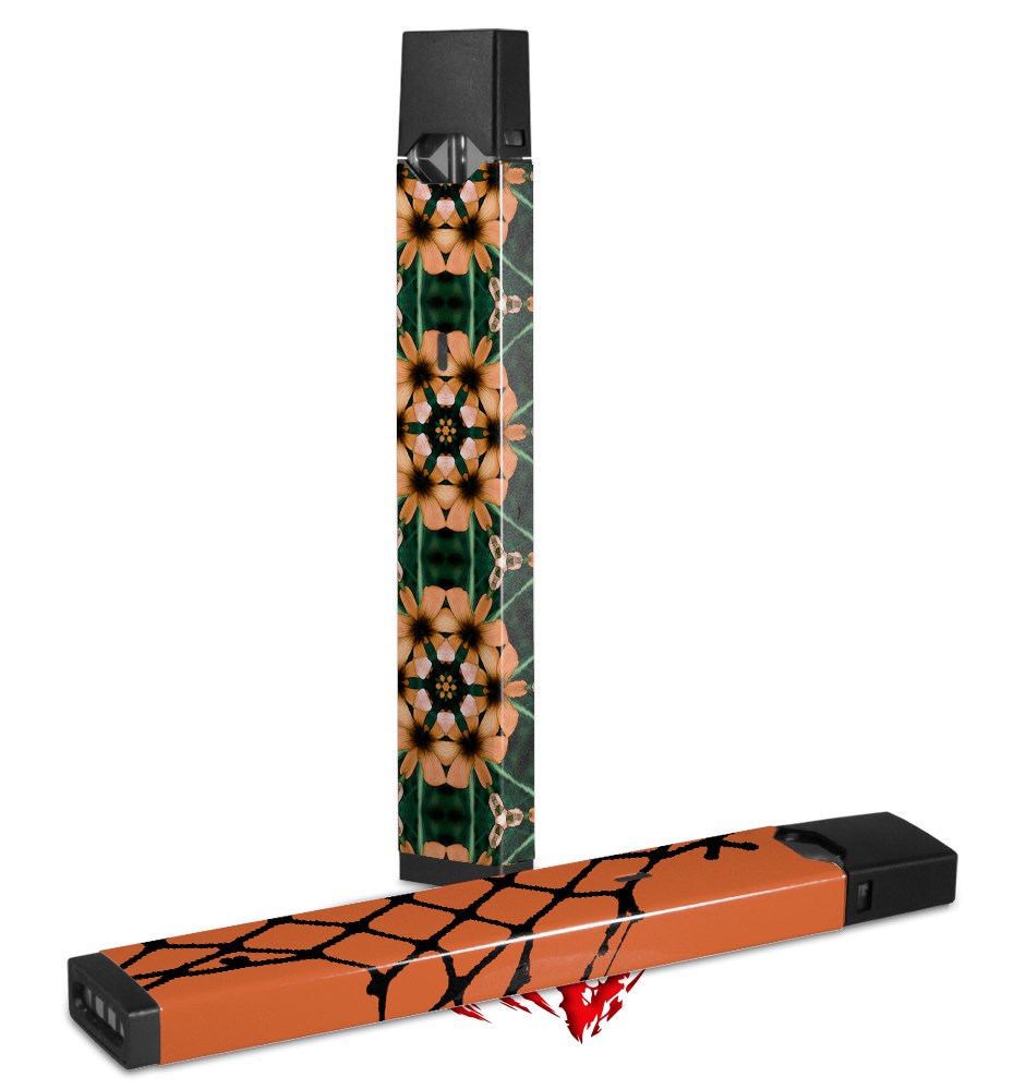 Skin Decal Wrap 2 Pack for Juul Vapes Floral Pattern Orange JUUL NOT INCLUDED