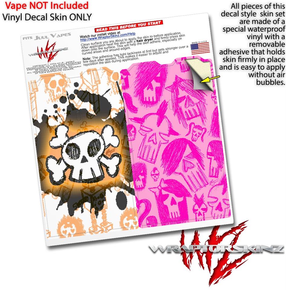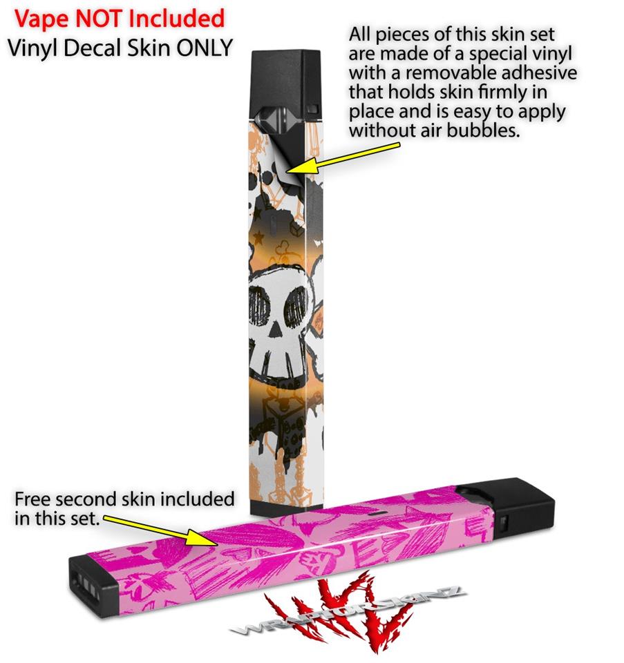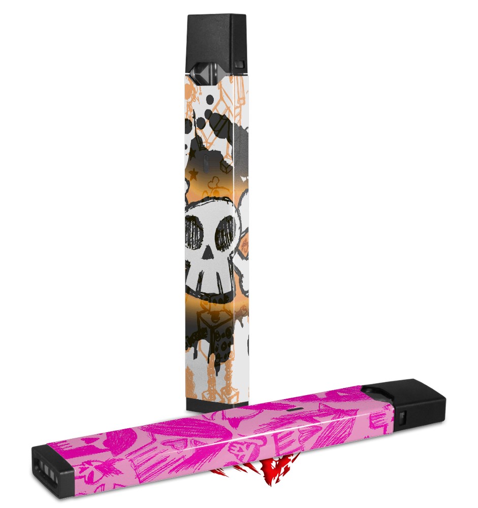 Skin Decal Wrap 2 Pack for Juul Vapes Cartoon Skull Orange JUUL NOT INCLUDED