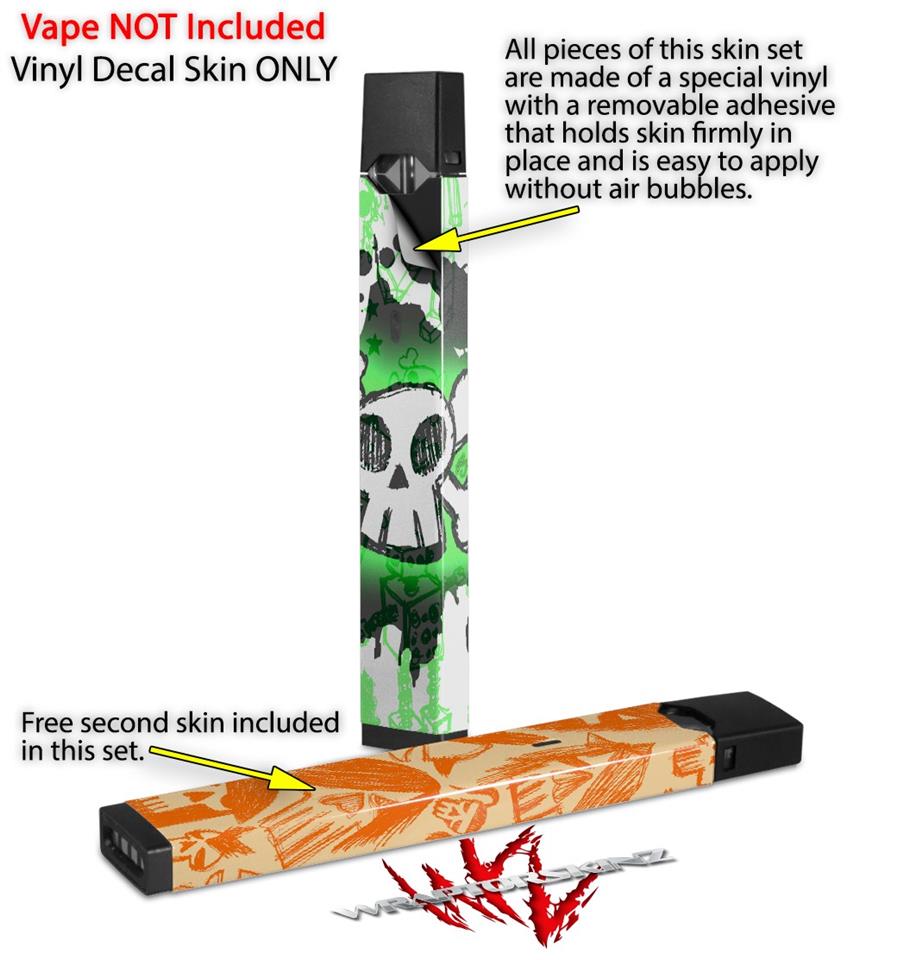 Skin Decal Wrap 2 Pack for Juul Vapes Cartoon Skull Green JUUL NOT INCLUDED