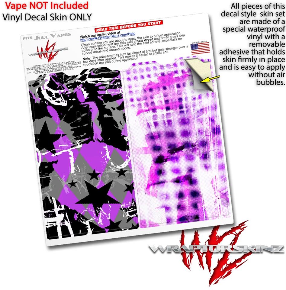 WraptorSkinz® skin wraps are printed using superb photo quality designs and vibrant colors printed with special fade resistant inks that last even in direct sun for years. WraptorSkinz are a composite of two layers of commercial grade materials. The bottom layer is a soft, flexible vinyl with a special removable adhesive that is easily positioned, applied without air bubbles. Next we print the bottom layer with UV protected, fade resistant inks that deliver superb photo quality designs in vibrant colors. Finally we bond a professional grade laminate over the entire skin adding a glossy protective finish. This product is not affiliated with or endorsed by the Juul brand.
