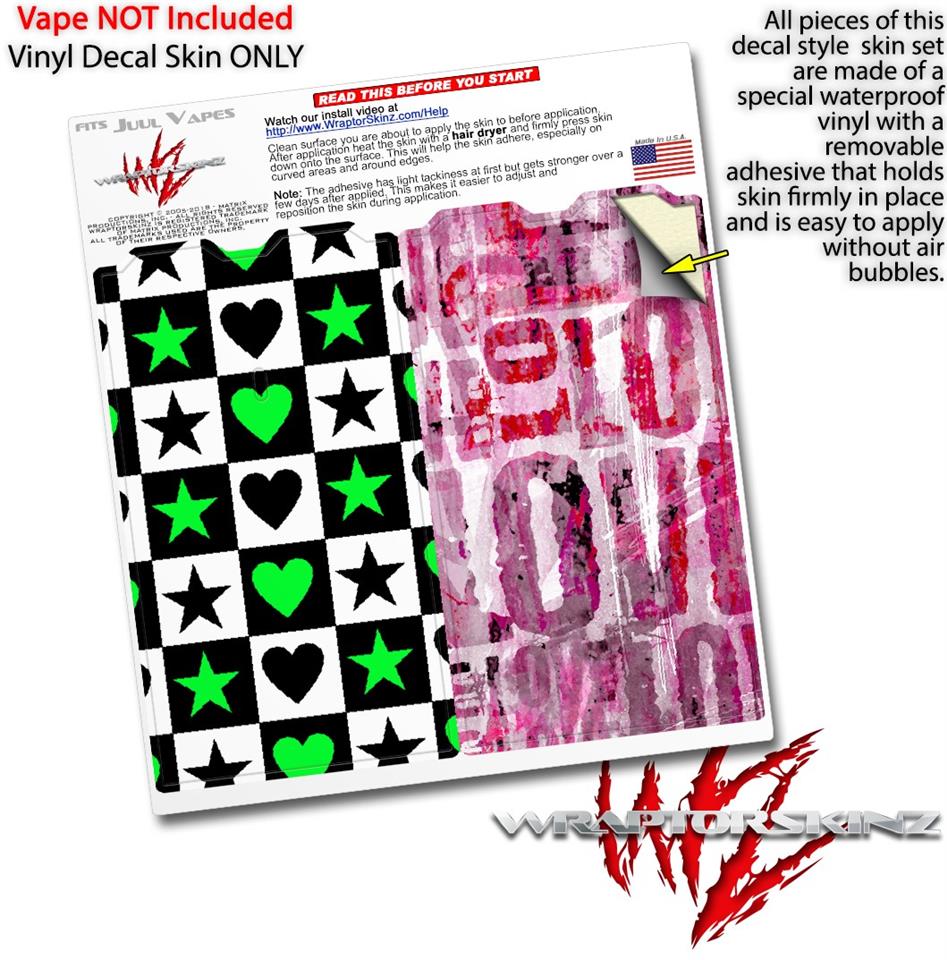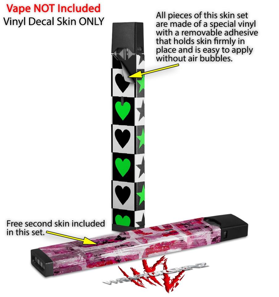 Skin Decal Wrap 2 Pack for Juul Vapes Hearts And Stars Green JUUL NOT INCLUDED