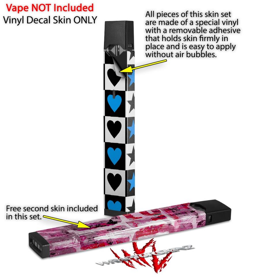 Skin Decal Wrap 2 Pack for Juul Vapes Hearts And Stars Blue JUUL NOT INCLUDED