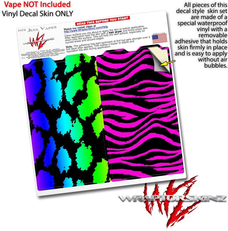 WraptorSkinz® skin wraps are printed using superb photo quality designs and vibrant colors printed with special fade resistant inks that last even in direct sun for years. WraptorSkinz are a composite of two layers of commercial grade materials. The bottom layer is a soft, flexible vinyl with a special removable adhesive that is easily positioned, applied without air bubbles. Next we print the bottom layer with UV protected, fade resistant inks that deliver superb photo quality designs in vibrant colors. Finally we bond a professional grade laminate over the entire skin adding a glossy protective finish. This product is not affiliated with or endorsed by the Juul brand.