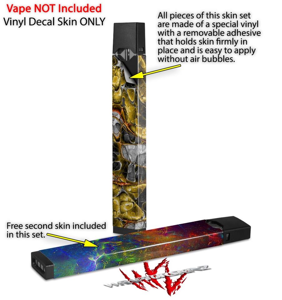 WraptorSkinz® skin wraps are printed using superb photo quality designs and vibrant colors printed with special fade resistant inks that last even in direct sun for years. WraptorSkinz are a composite of two layers of commercial grade materials. The bottom layer is a soft, flexible vinyl with a special removable adhesive that is easily positioned, applied without air bubbles. Next we print the bottom layer with UV protected, fade resistant inks that deliver superb photo quality designs in vibrant colors. Finally we bond a professional grade laminate over the entire skin adding a glossy protective finish. This product is not affiliated with or endorsed by the Juul brand.