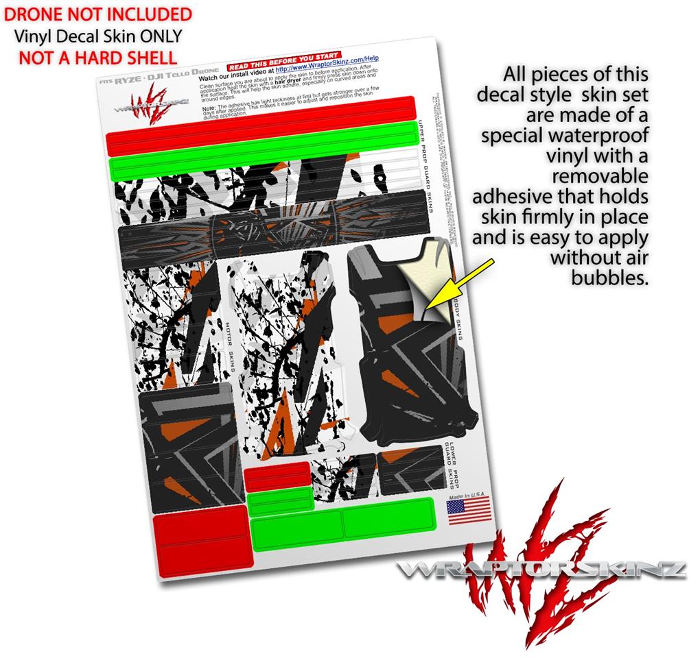 WraptorSkinz® skin wraps are printed using superb photo quality designs and vibrant colors printed with special fade resistant inks that last even in direct sun for years. WraptorSkinz are a composite of two layers of commercial grade materials. The bottom layer is a soft, flexible vinyl with a special removable adhesive that is easily positioned, applied without air bubbles. Next we print the bottom layer with UV protected, fade resistant inks that deliver superb photo quality designs in vibrant colors. Finally we bond a professional grade laminate over the entire skin adding a glossy protective finish. This product is not affiliated with or endorsed by the Ryze or DJI brand.