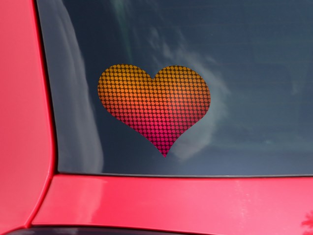 Faded Dots Hot Pink Orange - I Heart Love Car Window Decal 6.5 x 5.5 inches