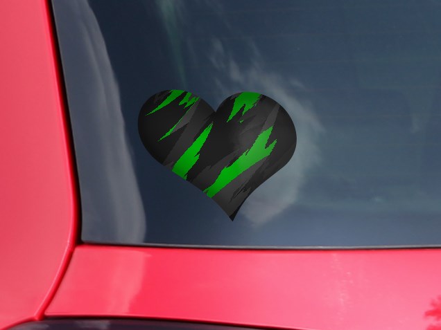 Jagged Camo Green - I Heart Love Car Window Decal 6.5 x 5.5 inches