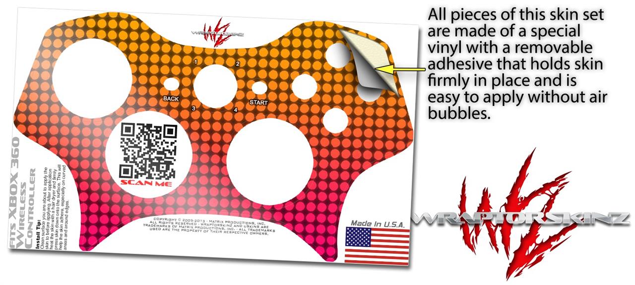 XBOX 360 Wireless Controller Decal Style Skin - Faded Dots Hot Pink Orange (CONTROLLER NOT INCLUDED)
