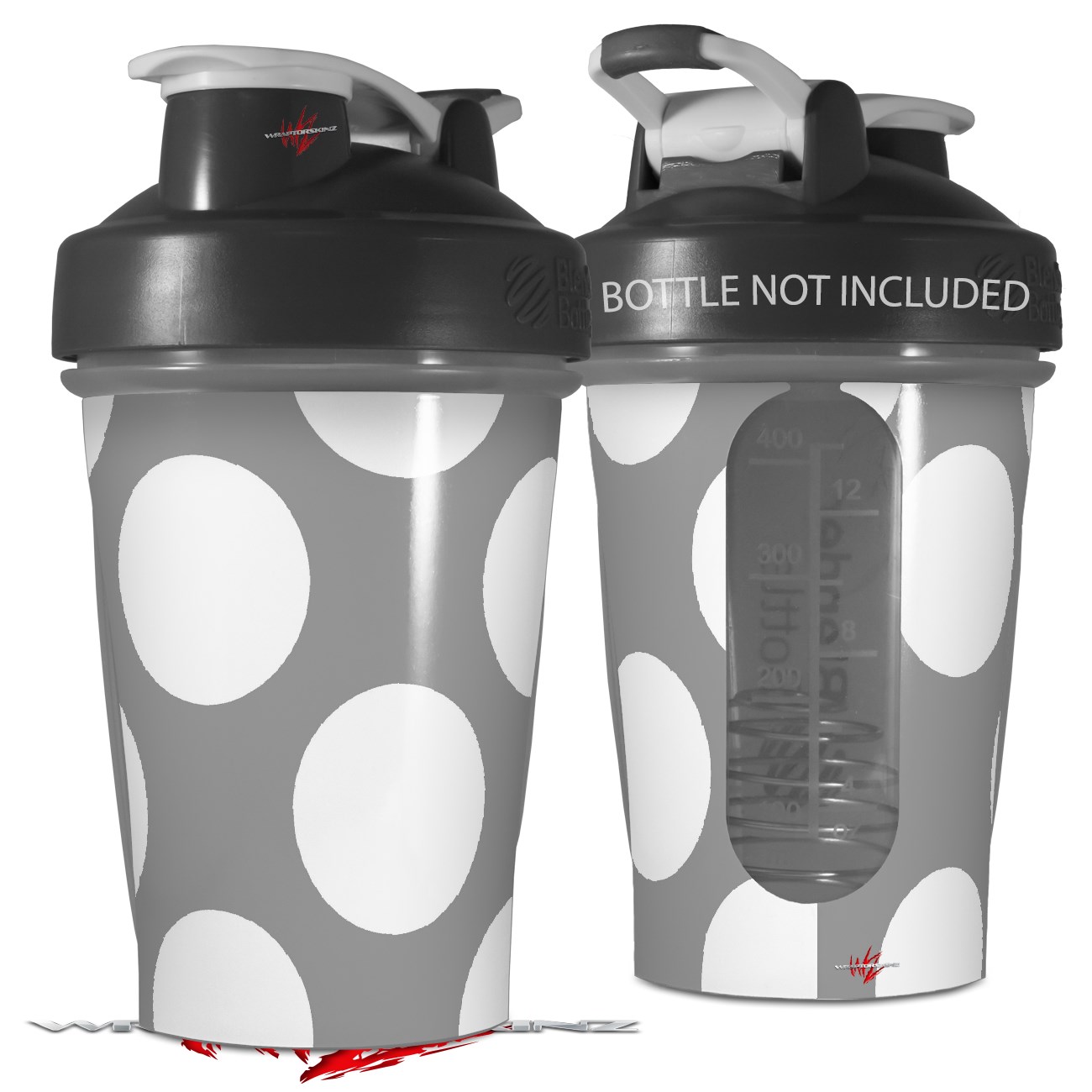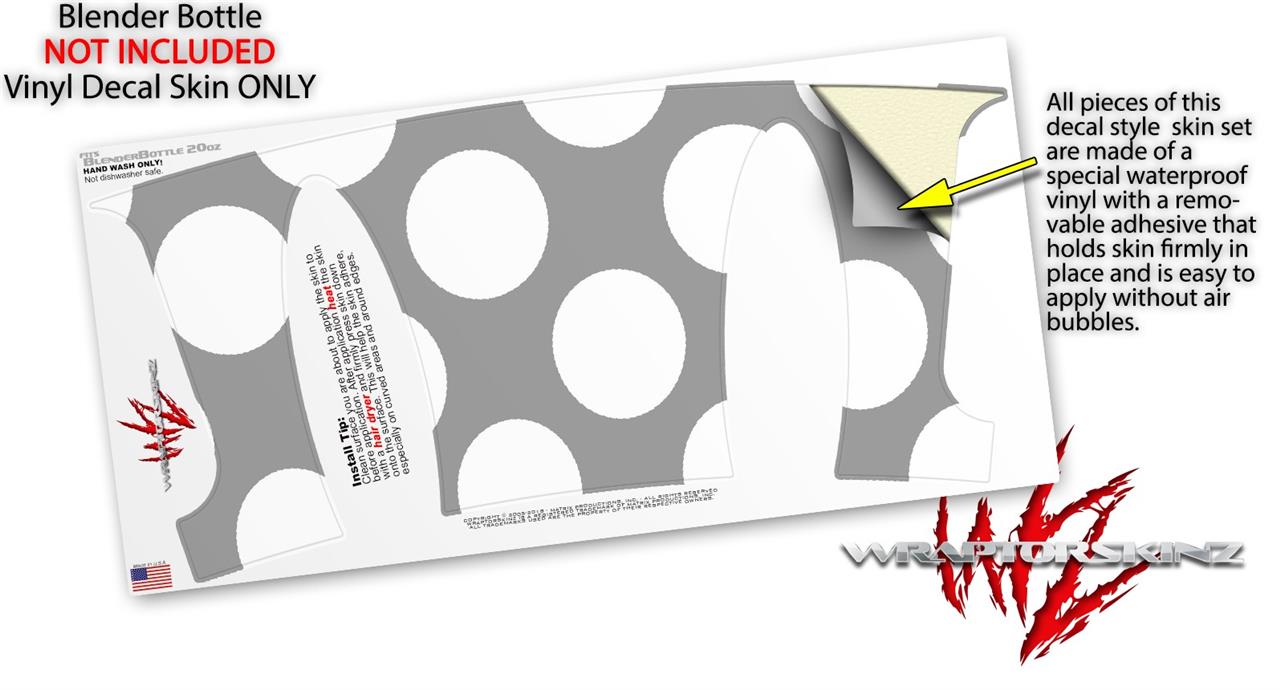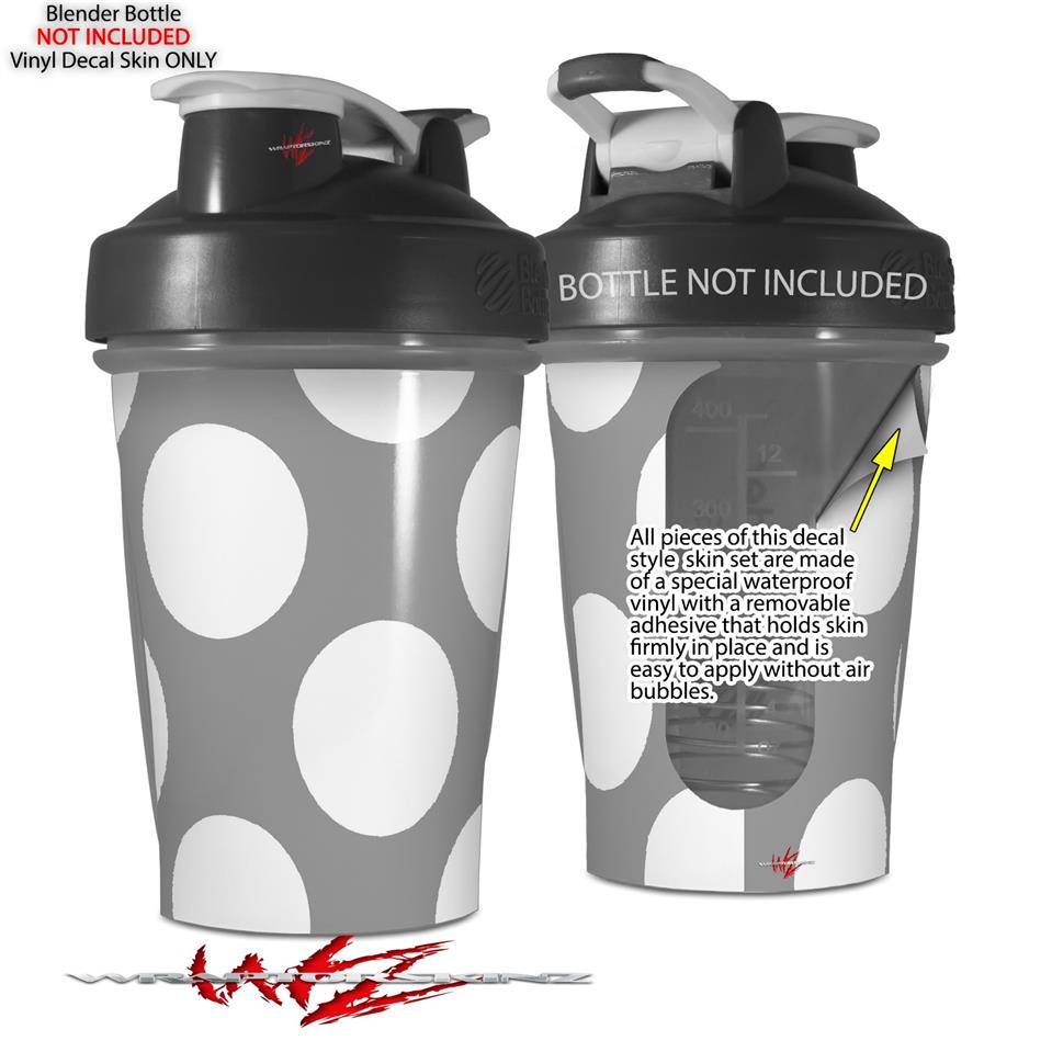 Decal Style Skin Wrap works with Blender Bottle 20oz Kearas Polka Dots Whtie On Gray (BOTTLE NOT INCLUDED)