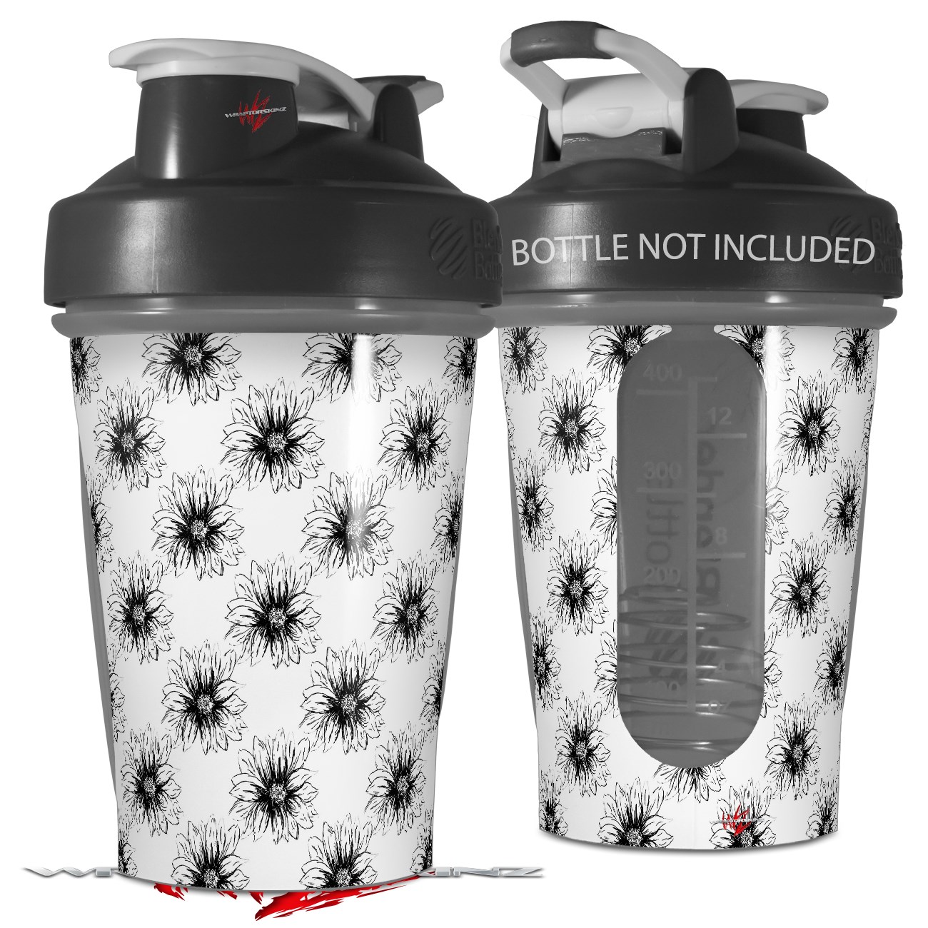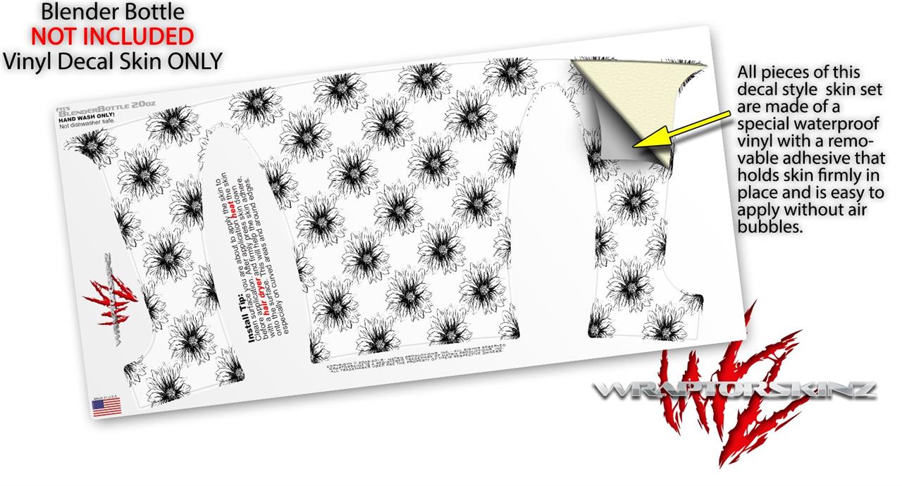 Decal Style Skin Wrap works with Blender Bottle 20oz Kearas Daisies Black on White (BOTTLE NOT INCLUDED)