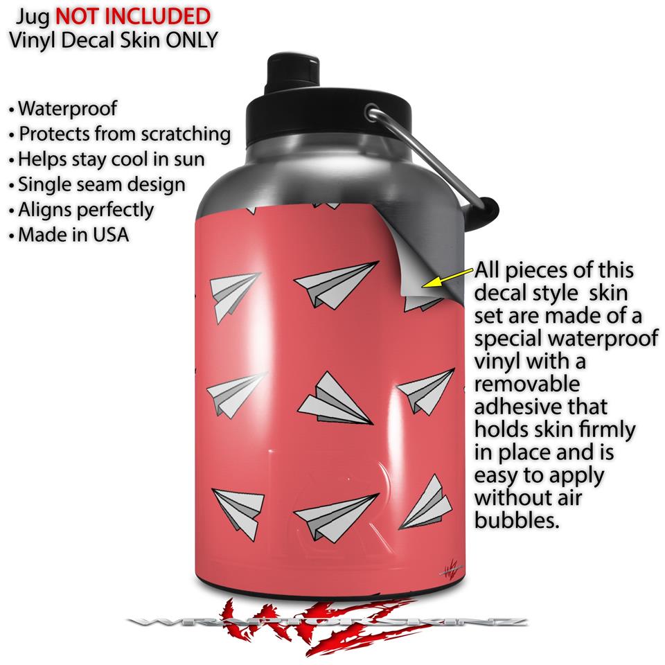 Skin Decal Wrap for 2017 RTIC One Gallon Jug Paper Planes Coral (Jug NOT INCLUDED) by WraptorSkinz