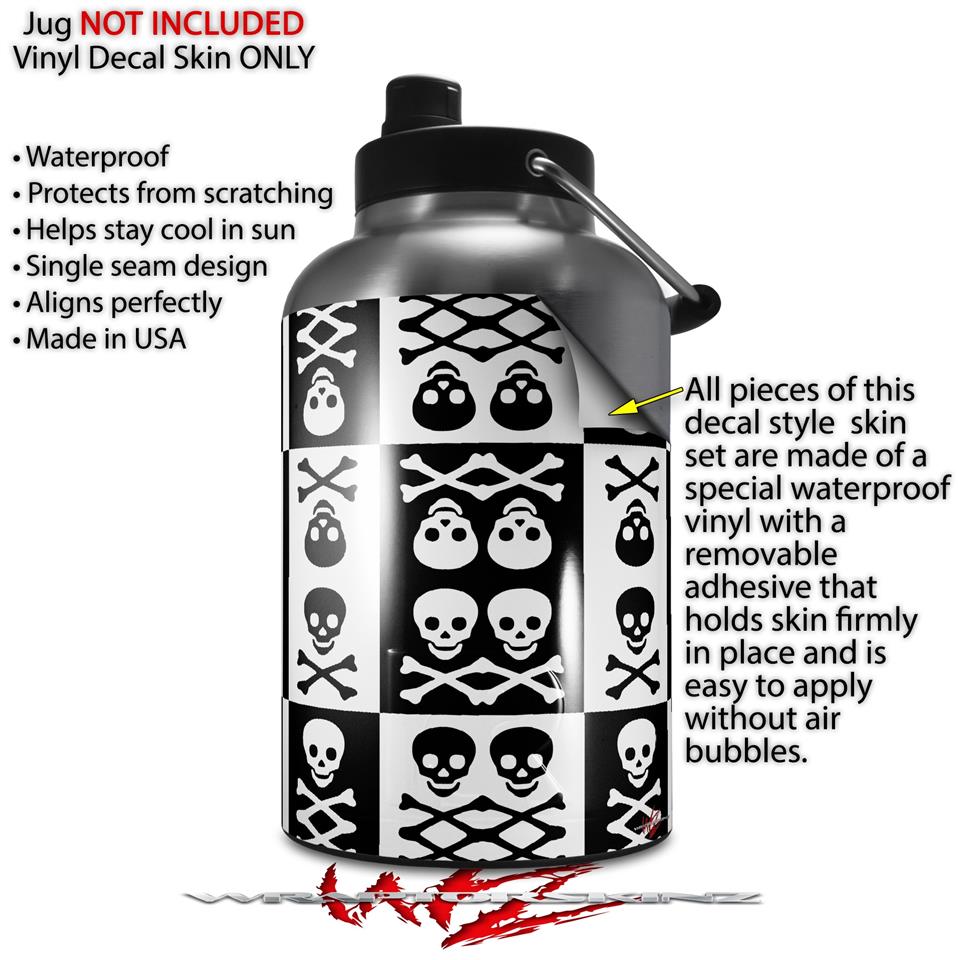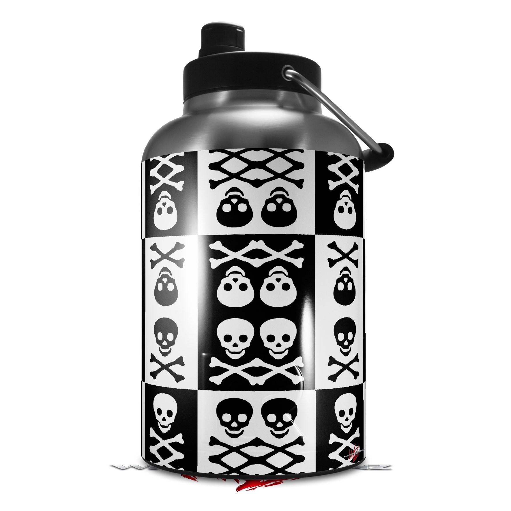 Skin Decal Wrap for 2017 RTIC One Gallon Jug Skull And Crossbones Pattern Bw (Jug NOT INCLUDED) by WraptorSkinz