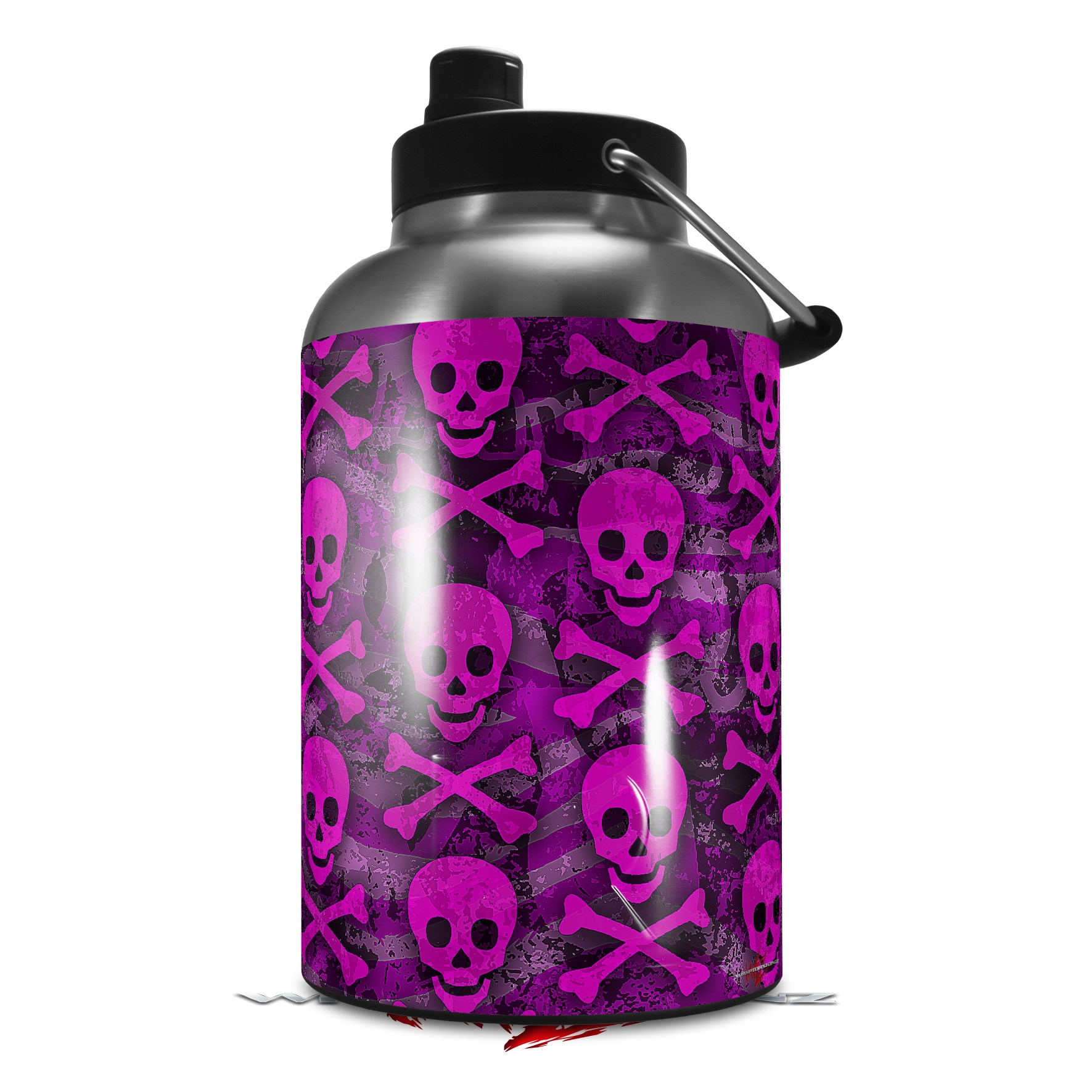 Skin Decal Wrap for 2017 RTIC One Gallon Jug Pink Skull Bones (Jug NOT INCLUDED) by WraptorSkinz