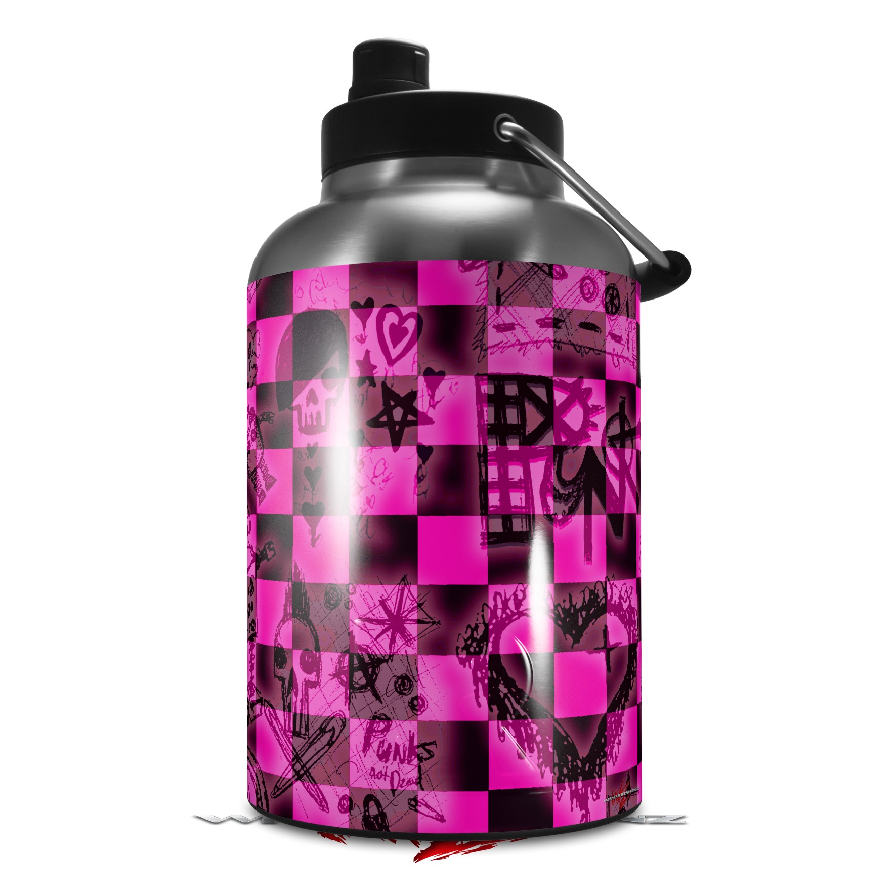 Skin Decal Wrap for 2017 RTIC One Gallon Jug Pink Checkerboard Sketches (Jug NOT INCLUDED) by WraptorSkinz