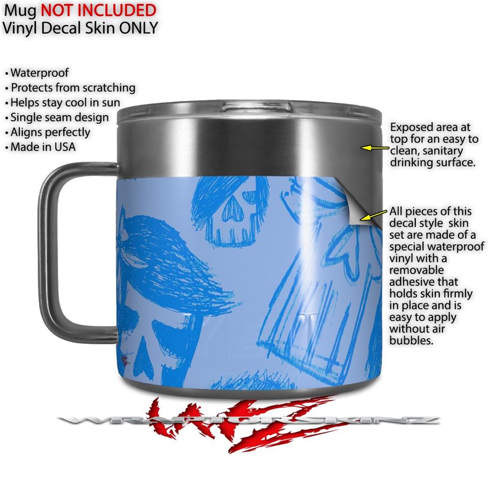 Skin Decal Wrap for Yeti Coffee Mug 14oz Skull Sketches Blue - 14 oz CUP NOT INCLUDED by WraptorSkinz