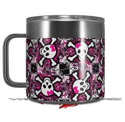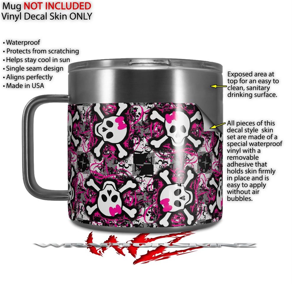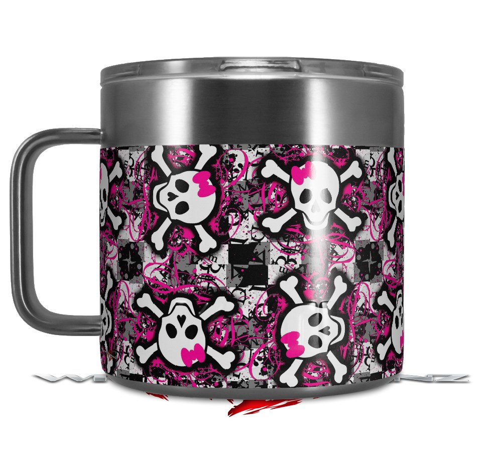 Skin Decal Wrap for Yeti Coffee Mug 14oz Splatter Girly Skull Pink - 14 oz CUP NOT INCLUDED by WraptorSkinz
