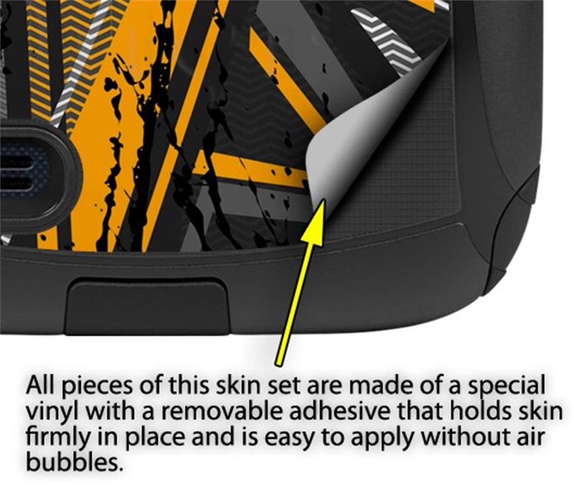WraptorSkinz® are self adhering vinyl decal style skins and are a great way to add a new look to your protective case. WraptorSkinz® are a composite of two layers of commercial grade materials. The bottom layer is a soft, flexible vinyl with a special removable adhesive that is easily positioned, applied without air bubbles. Next we print the bottom layer with UV protected, fade resistant inks that deliver superb photo quality designs in vibrant colors. Finally we bond a professional grade laminate over the entire skin adding a glossy protective finish.