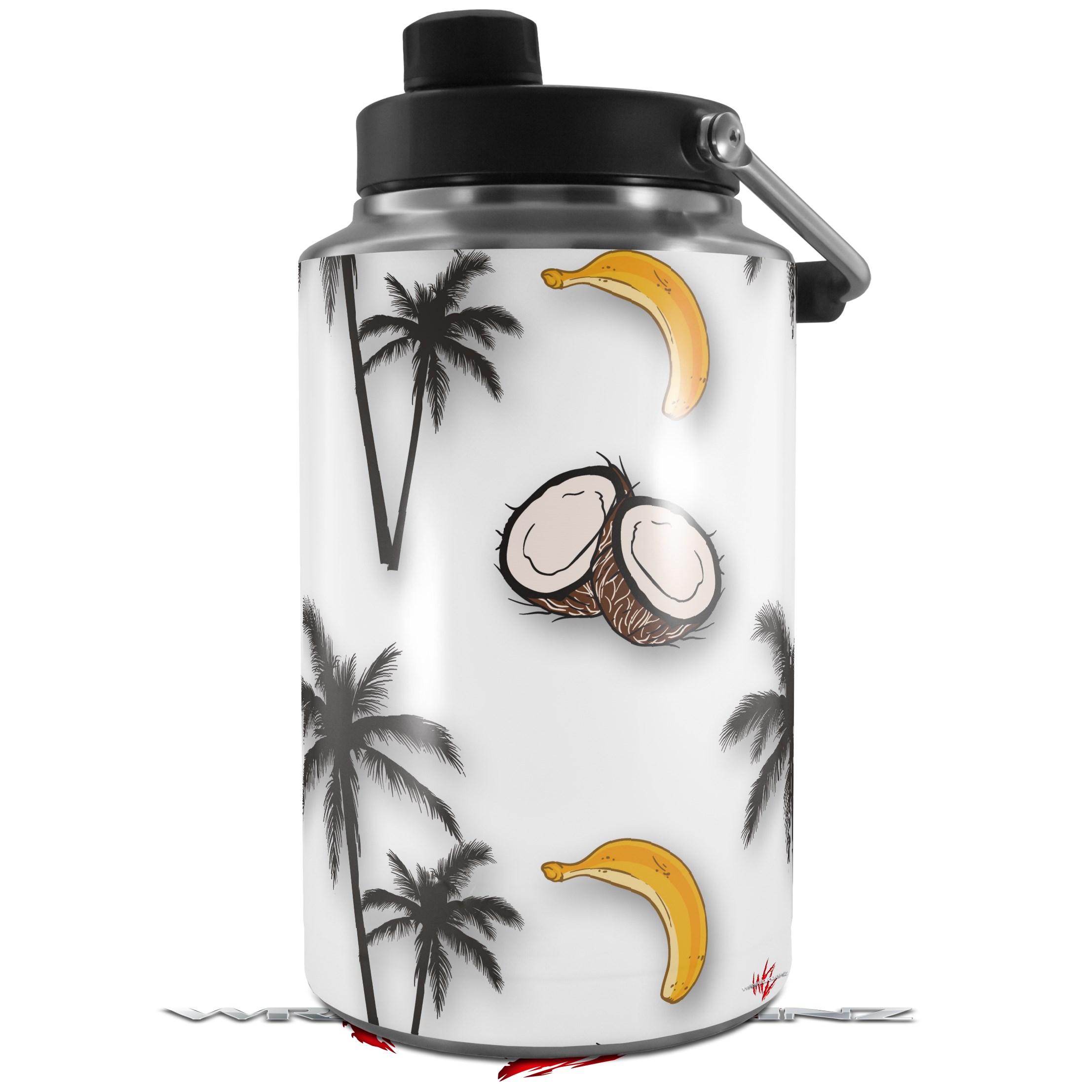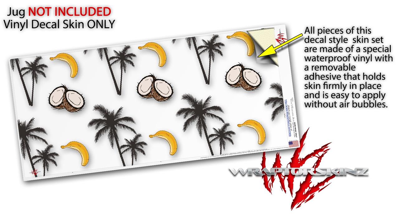Skin Decal Wrap for Yeti 1 Gallon Jug Coconuts Palm Trees and Bananas White - JUG NOT INCLUDED by WraptorSkinz
